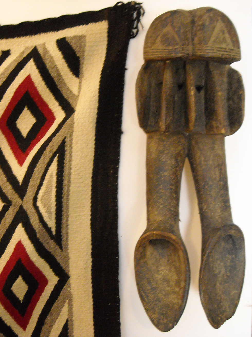 Hand carved figural loom pullys, musical instruments, masks, textiles, and more.